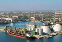 An aerial view of Nibulon Ltd.'s grain export complex at the Port of Nikolaev in Ukraine.
